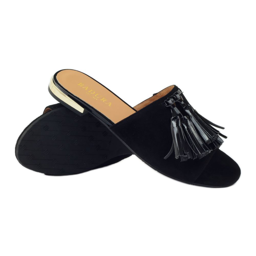 Badura Black Slippers with fringes Badura 5133 black yellow