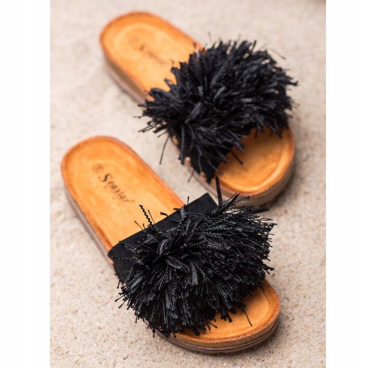 We present black flip-flops with fringes from the renowned Seastar brand - the perfect choice for people who want to stand out from the crowd and add a fashionable touch to their styling. These spectacular flip-flops attract attention with their unusual details and extraordinary design, thanks to which every woman will feel exceptional and stylish in them.