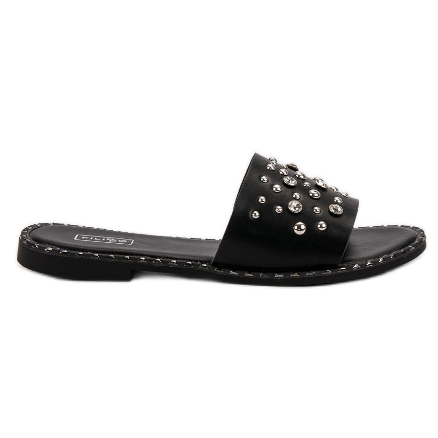 Details: Filippo Black Slippers With Rhinestones