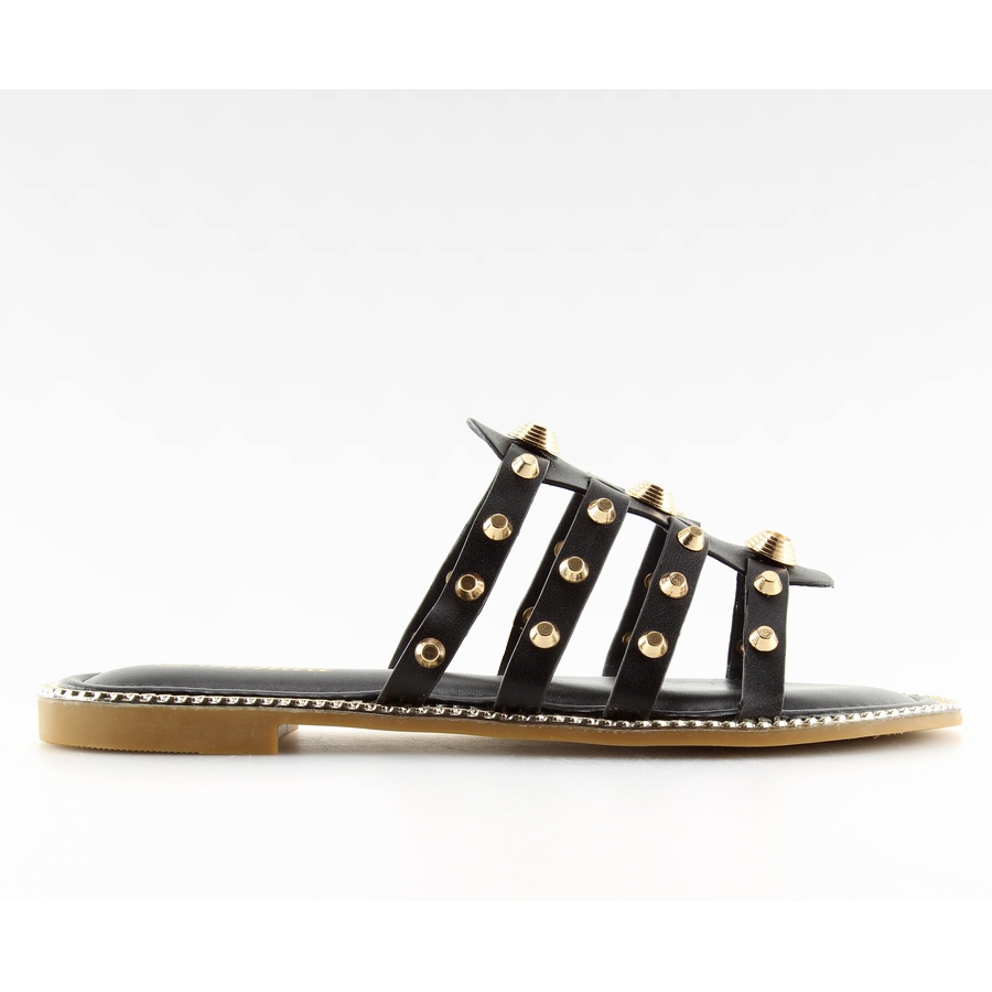 Details: Black slippers with studs 99-41 Black