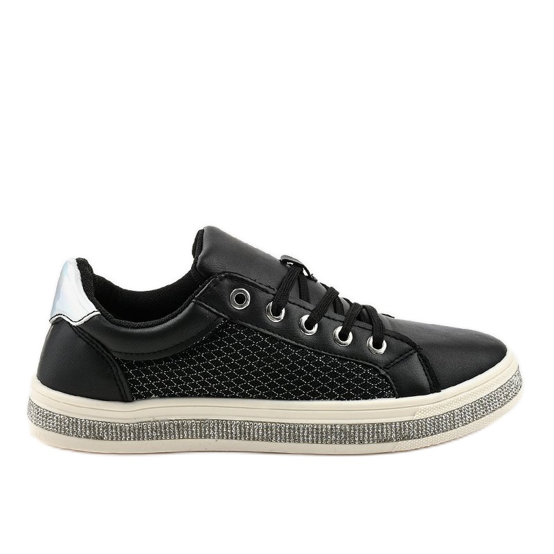 Discover the fashionable black sneakers with zircons 1153-Y, which are the perfect complement to any styling! Made of high-quality ecological leather, these shoes combine comfort and modern design. Their black color makes them match many sets, and subtle decorations with small zircons add them a unique character and elegant style.