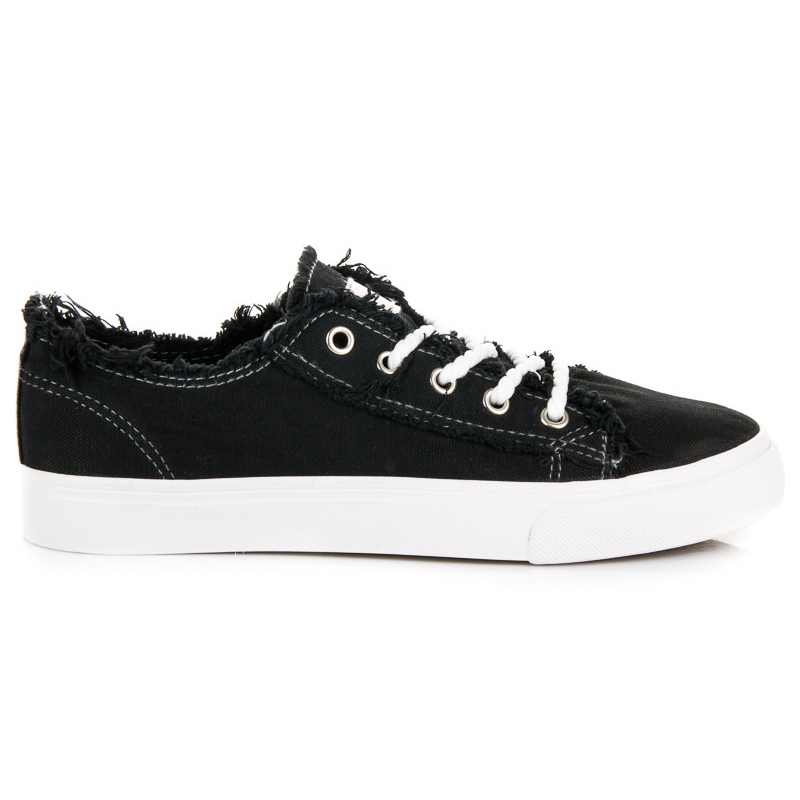 We present a unique model of black sneakers that combine a classic style with modern accents. These extremely comfortable shoes are the perfect choice for everyday wear, matching any style. The frayed finish of the material adds originality, and the soft heel counter ensures maximum comfort when worn.