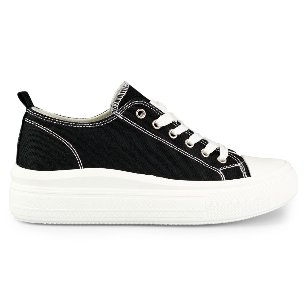 Black sneakers on a low platform - universal and stylish women's footwear from the Keeshoes collection. A classic, round nose, lacing and 4 cm platform add a few centimeters without losing comfort, thanks to which the model will work great every day in the spring/summer season.
