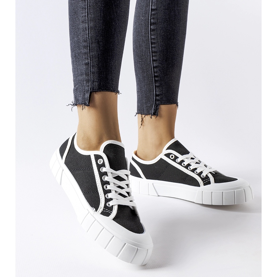 Black sneakers on a thick platform Egidio are the perfect choice for women who want to combine comfort with a fashionable look. With a lace-up fastening and a round toe, these sneakers stand out with their classic style, while also attracting attention with their modern design. Made of high-quality fabric, they provide comfort during summer days.