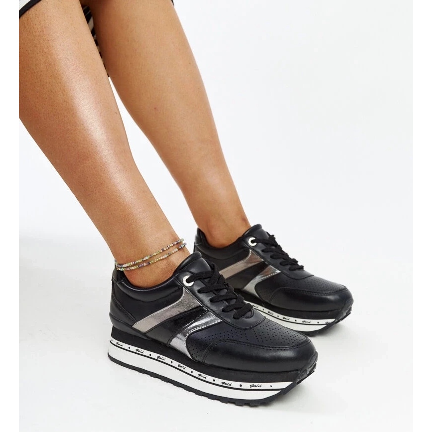 Black sneakers on the high sole Mehari is a must-have for every fashion lover and comfort. Made of high quality materials, these low sports shoes combine modern design and unique functionality. Their characteristic, metallic gloss gives them a unique look, which fits perfectly into the latest streetwear trends.