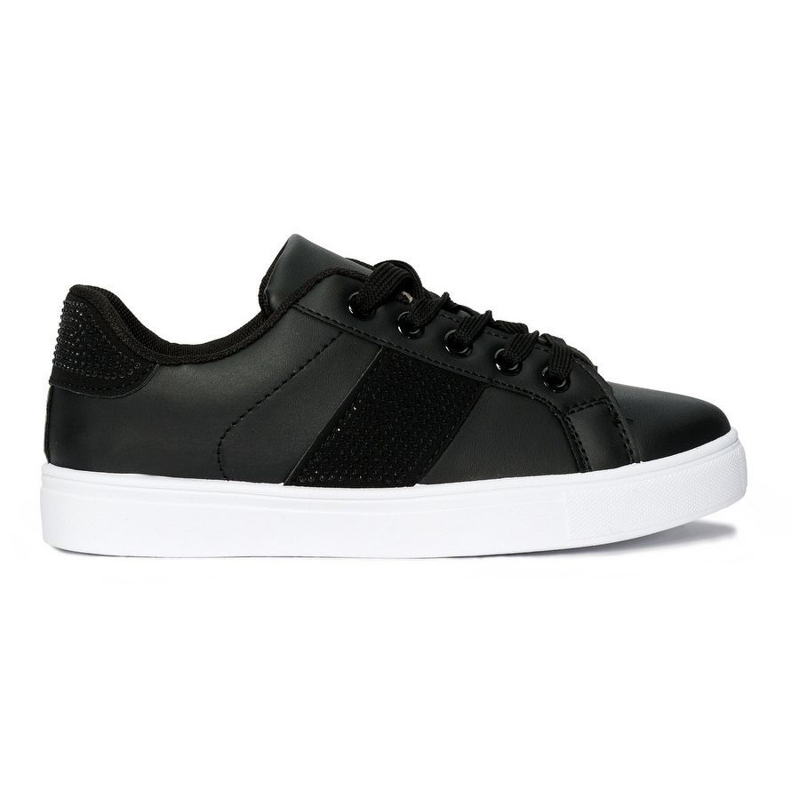 Black sneakers are an absolute must-have in every wardrobe. Their universal color, ecological leather and a sensual accent in the form of zircon makes it perfectly fit into both casual and more stylish outfits. A round toe and a built -in, soft heel guarantee comfort and support during everyday activities.