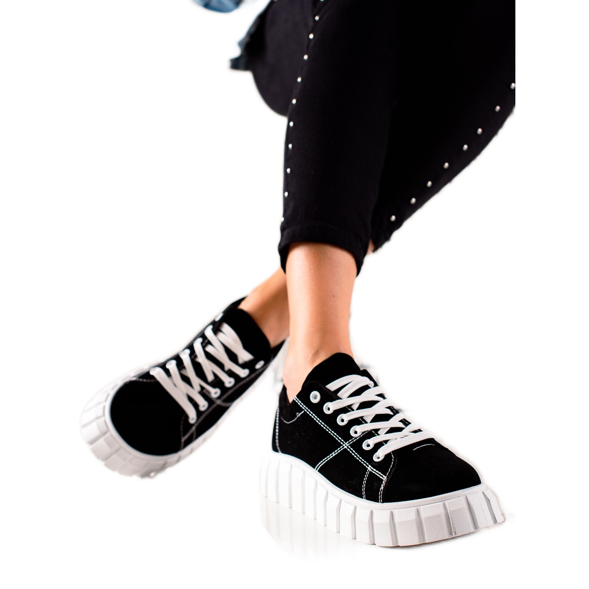 Discover comfort and style at its best with black platform sneakers from TRENDI. These fashionable shoes are the perfect choice for women who value a casual look and everyday comfort.