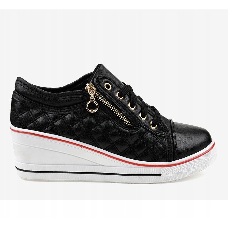 Black LT-413B-1 wedge sneakers are a great choice for modern women who value comfort and style. These elegant shoes look incredibly attractive thanks to their quilted uppers made of high-quality imitation leather, which gives them not only chic but also durability.