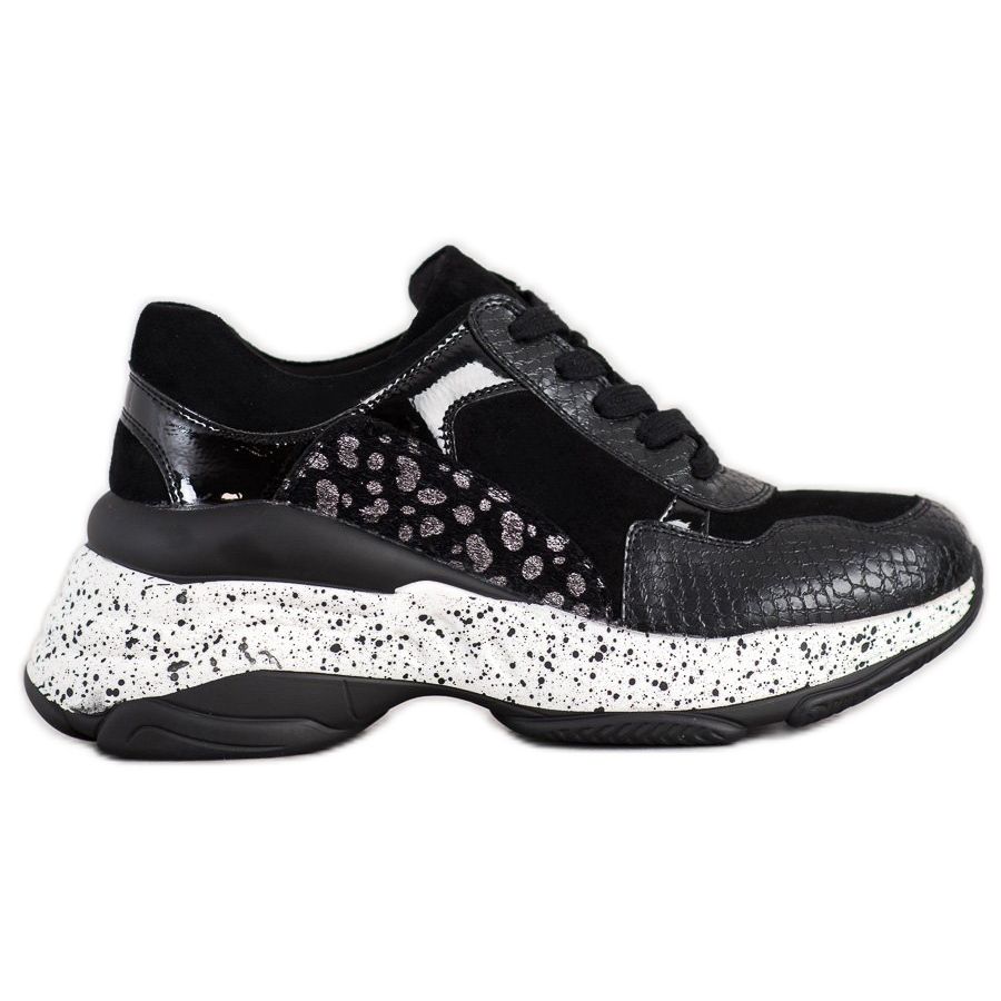 Black SDS sneakers are a great choice for any season – both on cooler days of autumn and winter, as well as in spring or summer. Their minimalist, animal pattern gives them a fashionable character, and the low height and 7 cm platform make them comfortable and easy to wear all day long.