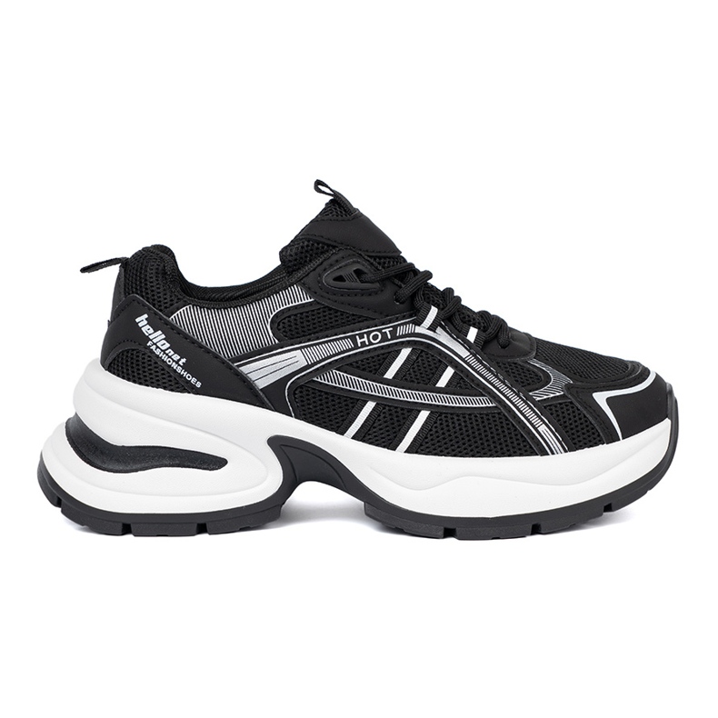 Details: Shelvt Black sneakers with a breathable upper and a massive white sole