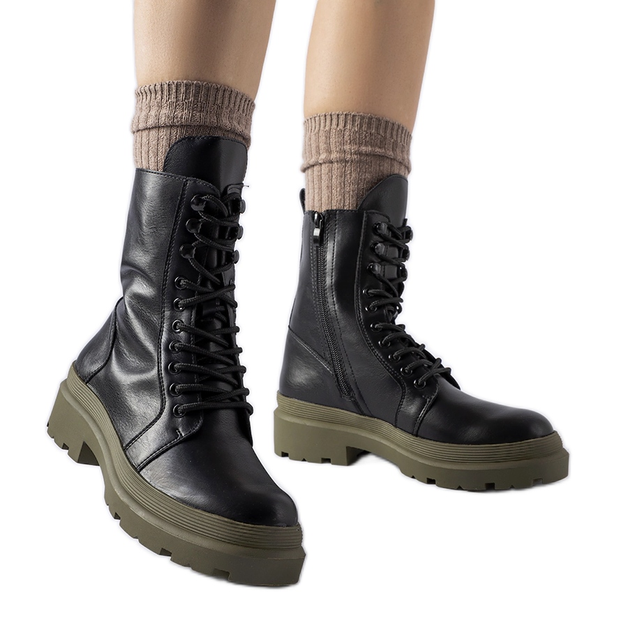 Modern Quennie trappers combine a raw, winter character with a distinct color accent - a black upper and a green sole create a fashionable, eye -catching combination. Warming provides thermal comfort on cooler days, and the zipper on the side makes it easier to put on and take off. These are practical and stylish ankle boots that are great for autumn and winter walks.