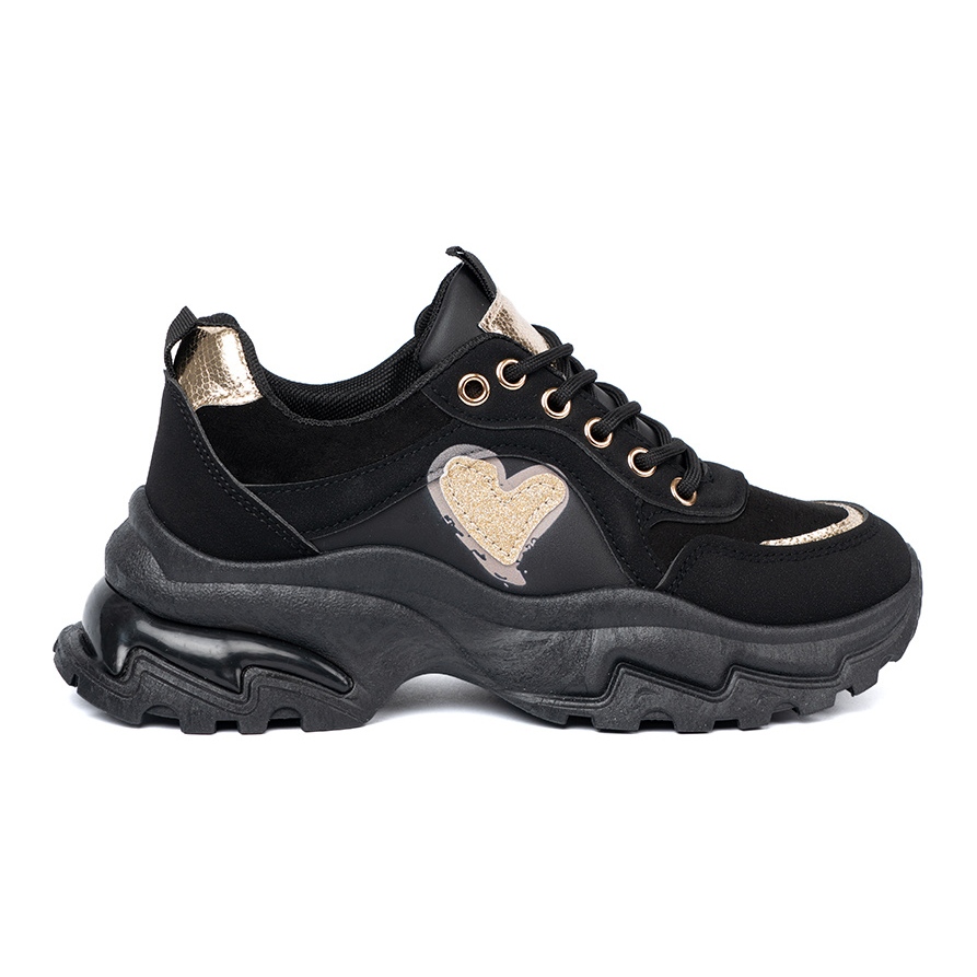 Shelvt Shelvt Black sneakers with a decorative golden heart