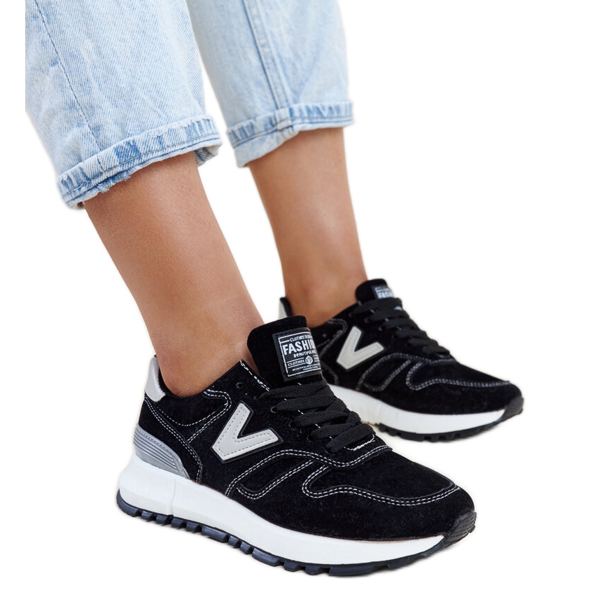 Details: Black sneakers with a thicker eco-suede Olonio sole