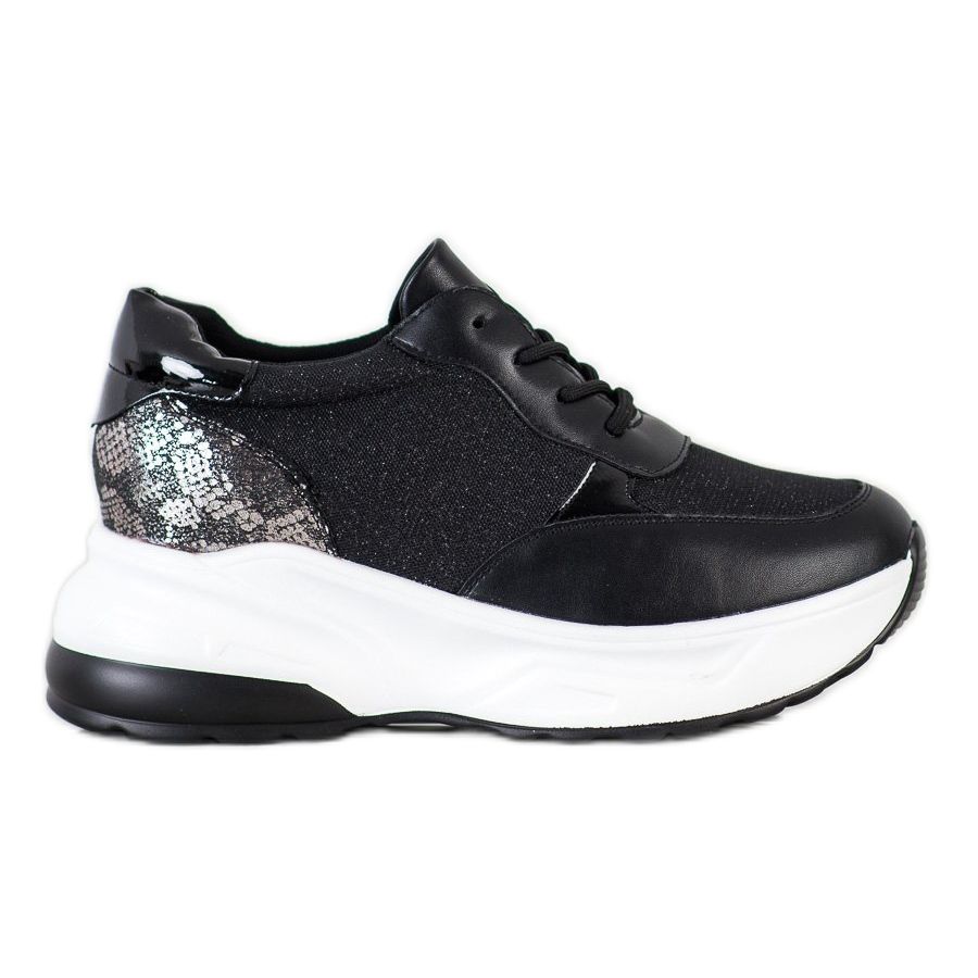 Black Sneakers with Glitter from the manufacturer Bestelle are the perfect choice for women who want to combine comfort with a stylish finish. These unique shoes in black, enriched with silver glitter, will certainly attract attention and emphasize the individual style of every woman wearing them.