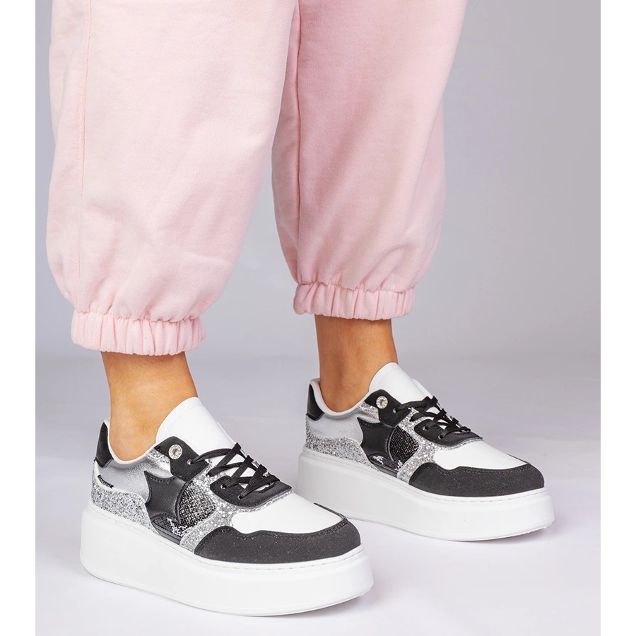 Made of high quality synthetics, they are characterized not only by modern appearance, but also durability. The round nose gives them a classic character, and the glitter finish is an effective detail that catches the eye. Sneakers with a 5.5 cm high platform not only optically lengthen the figure, but also provide comfort during daily activities.