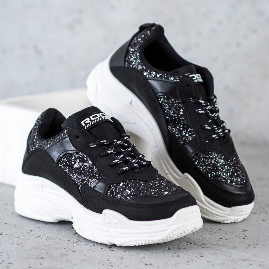 Black glitter sneakers from SHELOVET are the perfect choice for active women who want to combine comfort with a fashionable look. Made of high-quality imitation leather, these low-top sports shoes are perfect for both everyday styling and more casual outings.