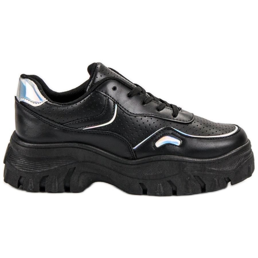 Discover exceptional style and comfort with the black SHELOVET women's sneakers with spectacular holographic accents. These original shoes will perfectly enrich your everyday wardrobe, adding a modern character.