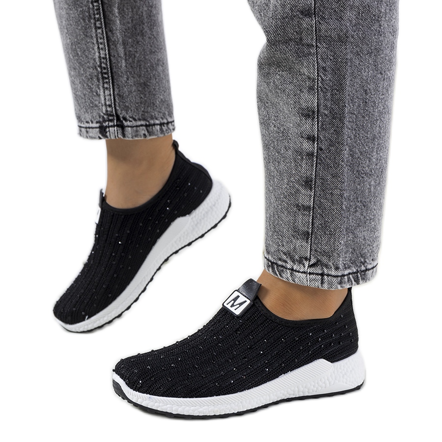 Black sneakers with Maasje zircons (model TF2117) - Must have this season! A soft, material upper with a "sock" cut perfectly adapts to the foot, providing comfort throughout the day. Gentle zircon decoration adds shine and elegance, thanks to which sneakers are great for both casual and more output stylizations.