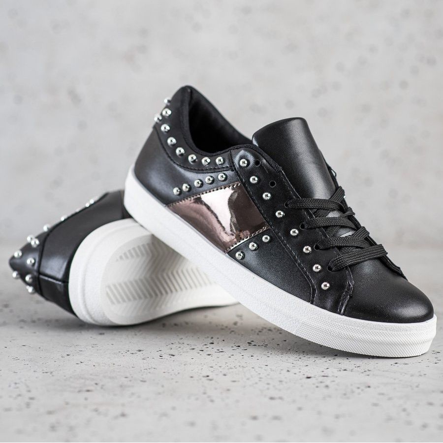 Details: SHELOVET Black Sneakers With Ornaments