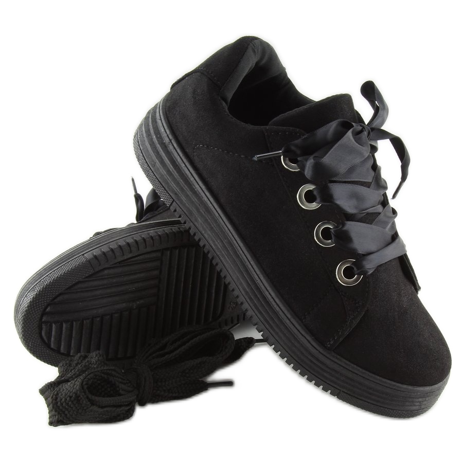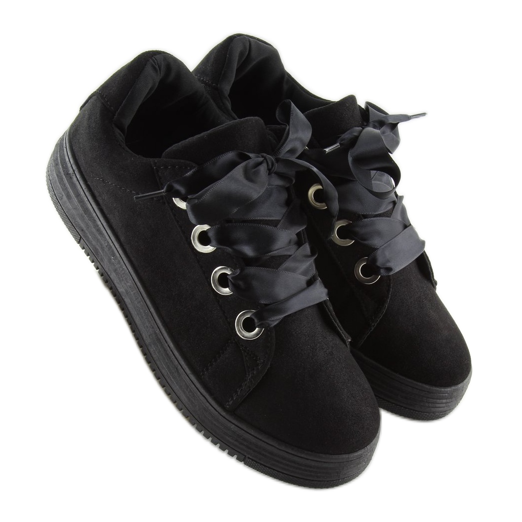 Details: Black sneakers with ribbons H99-23 Black