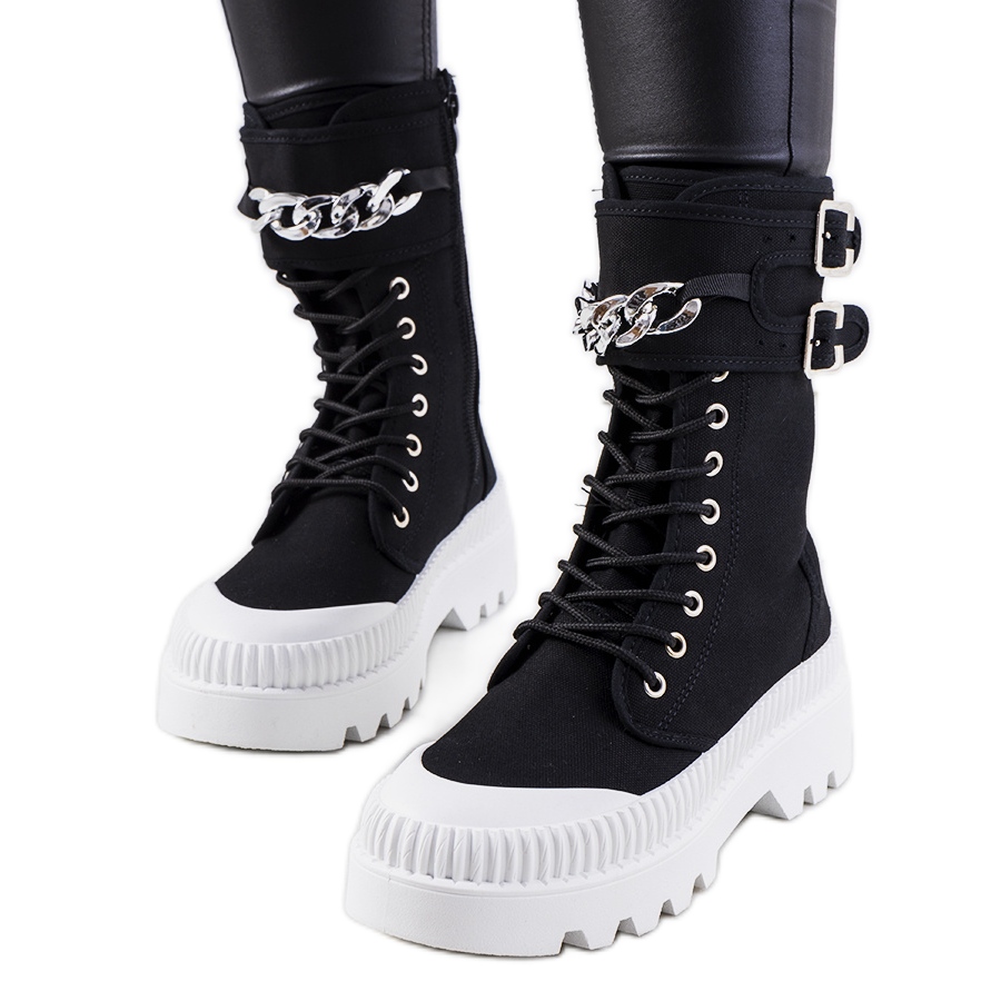 Introducing the Black Taus Chain Sneakers – the perfect choice for women who want to add a fashionable edge to their style! These unique sneakers are distinguished by a high tractor sole, which provides not only comfort of wearing, but also excellent grip on various surfaces. The style of the sneakers, combined with an elegant strap decorated with a chain, gives them an original character, thanks to which they will become an inseparable element of your wardrobe.