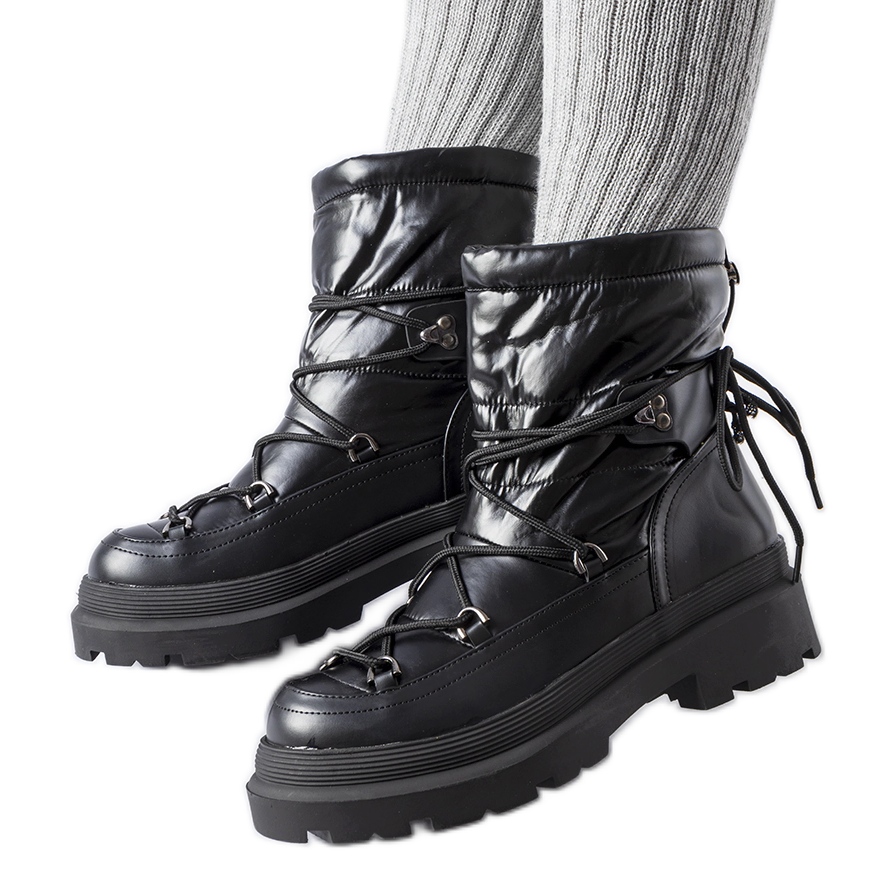 Eagleville classic black snow boots are a proposal for women who value comfort and a simple winter design. Made of eco-leather and synthetic materials, with a rounded nose and a flat heel, ensure comfort all day. The puller at the top effectively protects against slipping of snow, and the sliding structure makes the shoes easy to put on.