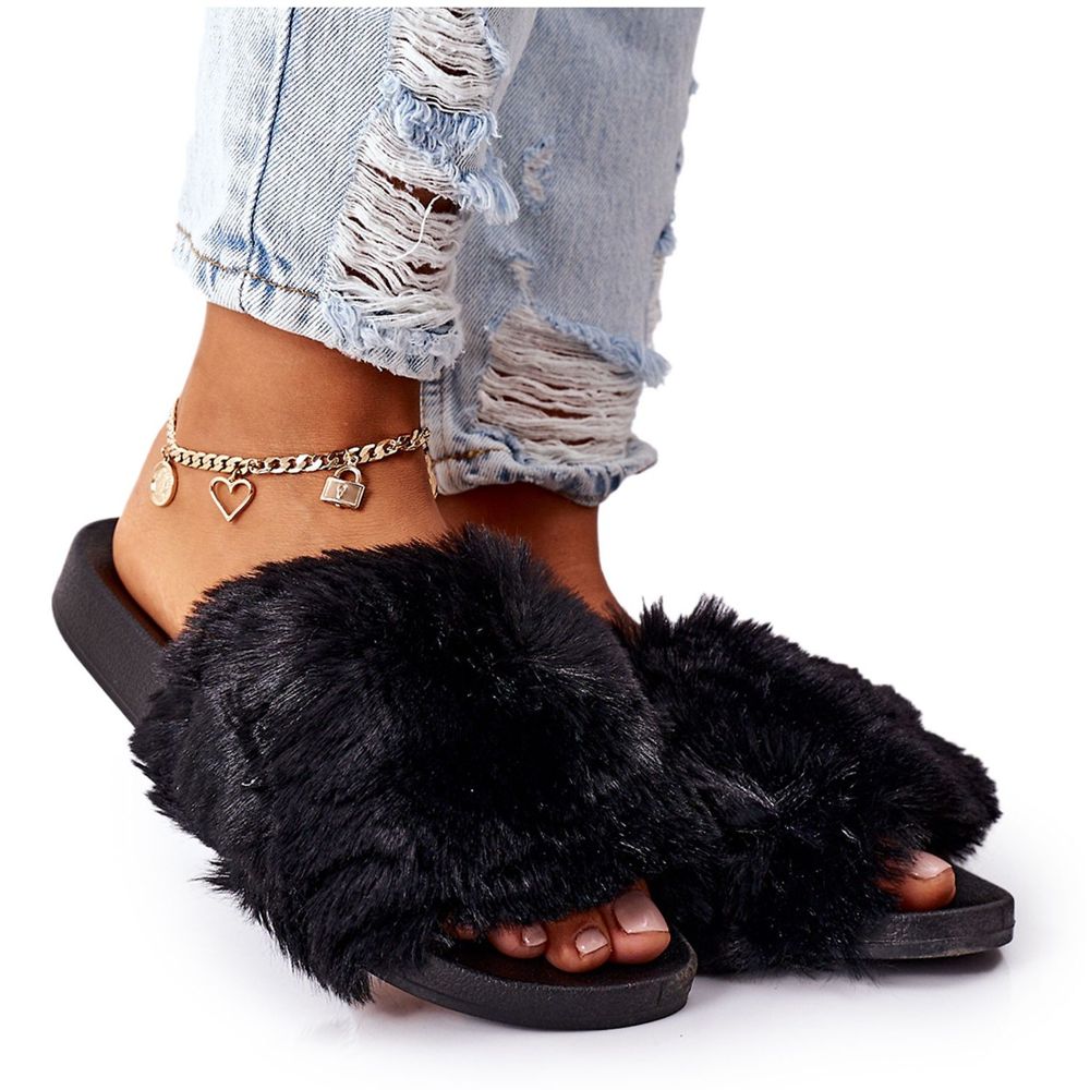 FJ1 FJ1 Black Soft Rubber Slippers With Fur