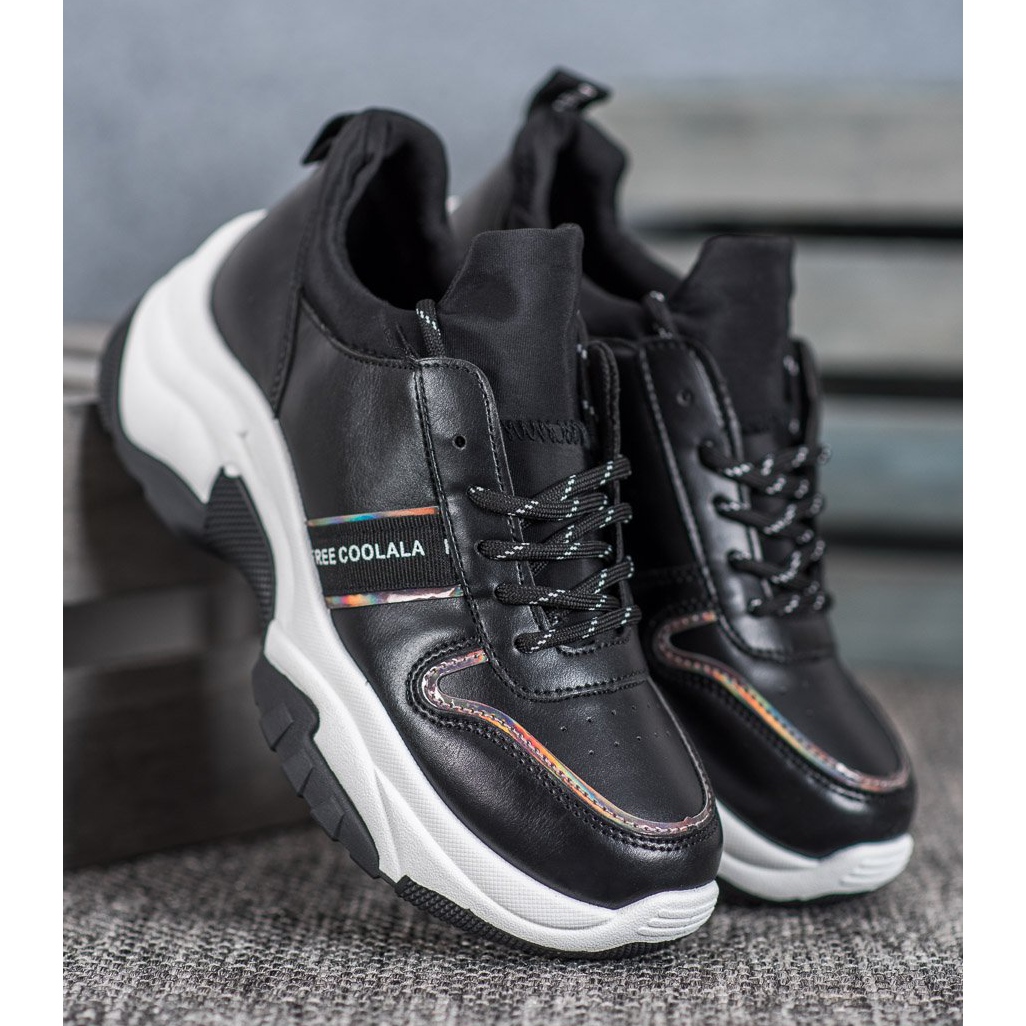 Black SHELOVET sports shoes are an extremely stylish and functional choice for women who value both a fashionable look and comfort of wearing. Made of high-quality materials - textile and imitation leather - they provide durability and ease of everyday use. Their classic black color makes them a great match for various styles, both casual and more sporty.