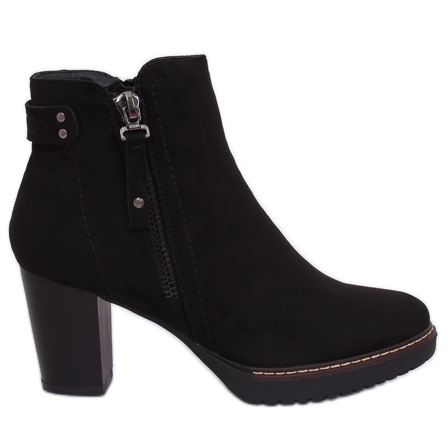 We present the 8B856 suede ankle boots in black – a must-have for every fashionable woman! These elegant women's ankle boots are characterized by a stable 8 cm heel, which provides comfort and sure footing. The classic design with subtle stitching along the sole and a decorative zipper on the upper adds a unique charm.