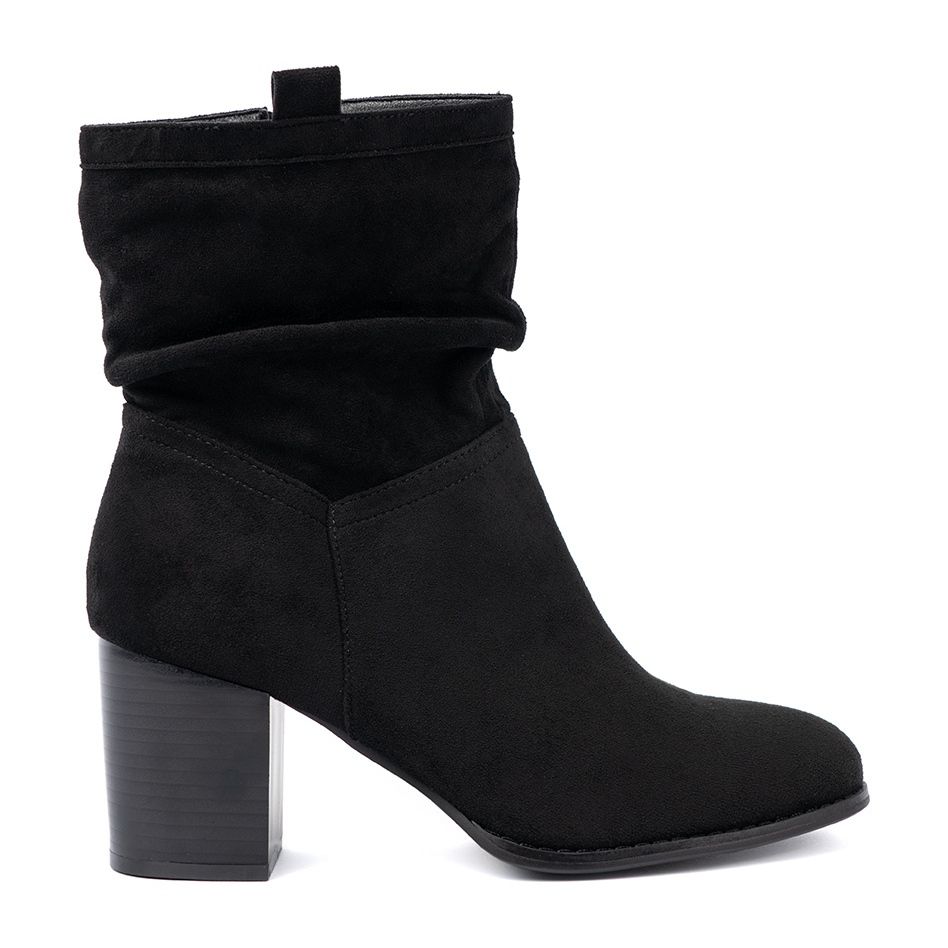 Discover elegance and comfort in one in Shelvt boots, which will perfectly complement any daily stylization. These black suede boots on the post with a crinkled upper are a must-have this fall and winter. Made of high quality ecological suede, they offer not only a fashionable look, but also care for the environment.