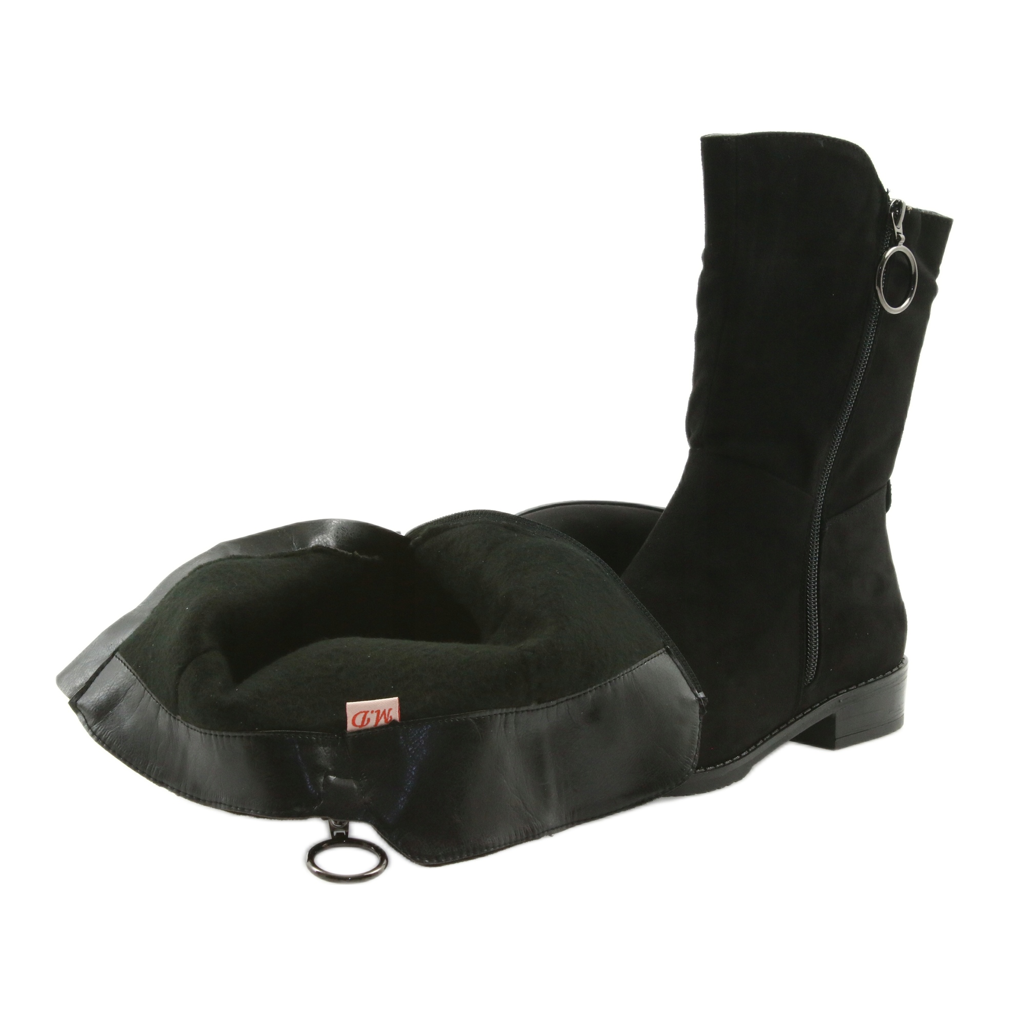 We invite you to discover elegance and comfort with the black suede boots SA130 from the M.Daszyński brand. These unique shoes are characterized by a longer upper reaching 21.5 cm, which gives them not only style but also comfort of wearing. Made of ecological nubuck leather, the boots combine modern design with high utility values.