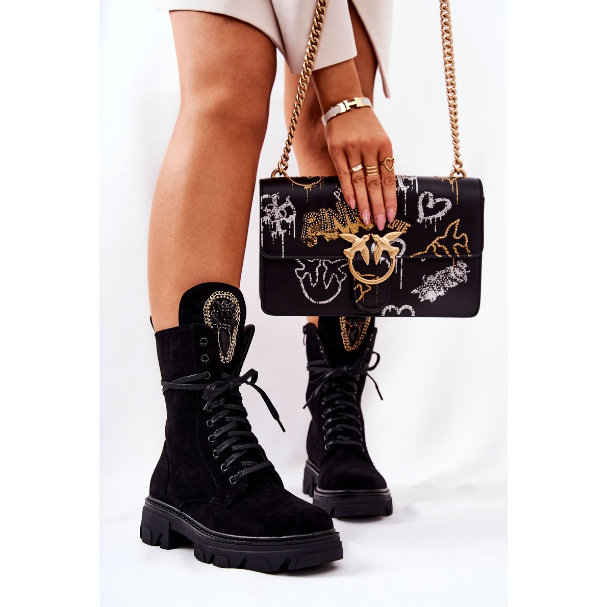 PL4 Elaina suede ankle boots are a great choice for every fashionable woman who values style and comfort. These elegant, black ankle boots are distinguished by their unique decoration on the tongue, which is made of subtle beads, zircons and an elegant chain. Made of high-quality eco-suede leather, they combine modern design and durability.