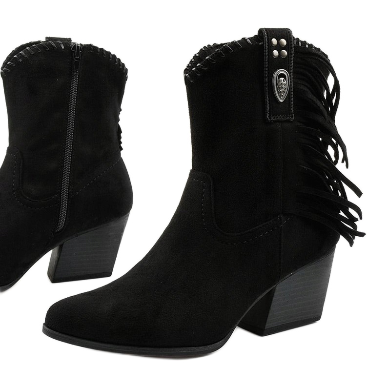 The boots reach above the ankle, making them a great choice for colder days. Decorative fringes placed above the closed heel give them an original look, and the wide stitching and loop add not only aesthetics but also durability. Thanks to the 5-centimeter block heel, every woman will feel confident and comfortable, regardless of the occasion.
