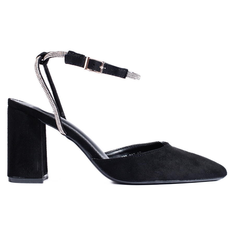 Black suede pumps with an open heel by Shelovet are the quintessence of classic style combined with a hint of modernity. These elegant women's sandals are a great choice for a variety of occasions - from formal events to evening parties. Their universal design allows them to be matched to many styles, both more formal and casual, which makes them shoes that should be in every woman's wardrobe.