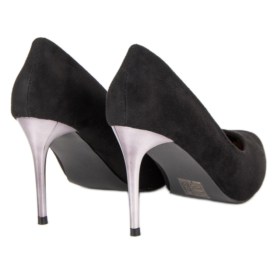Black suede stilettos by Butymodne are the epitome of elegance that should be in every fashionable woman's wardrobe. Their classic design makes them perfect for all formal occasions, evening outings or social gatherings. Made of ecological suede in deep black, these stilettos attract attention and add chic to any styling.
