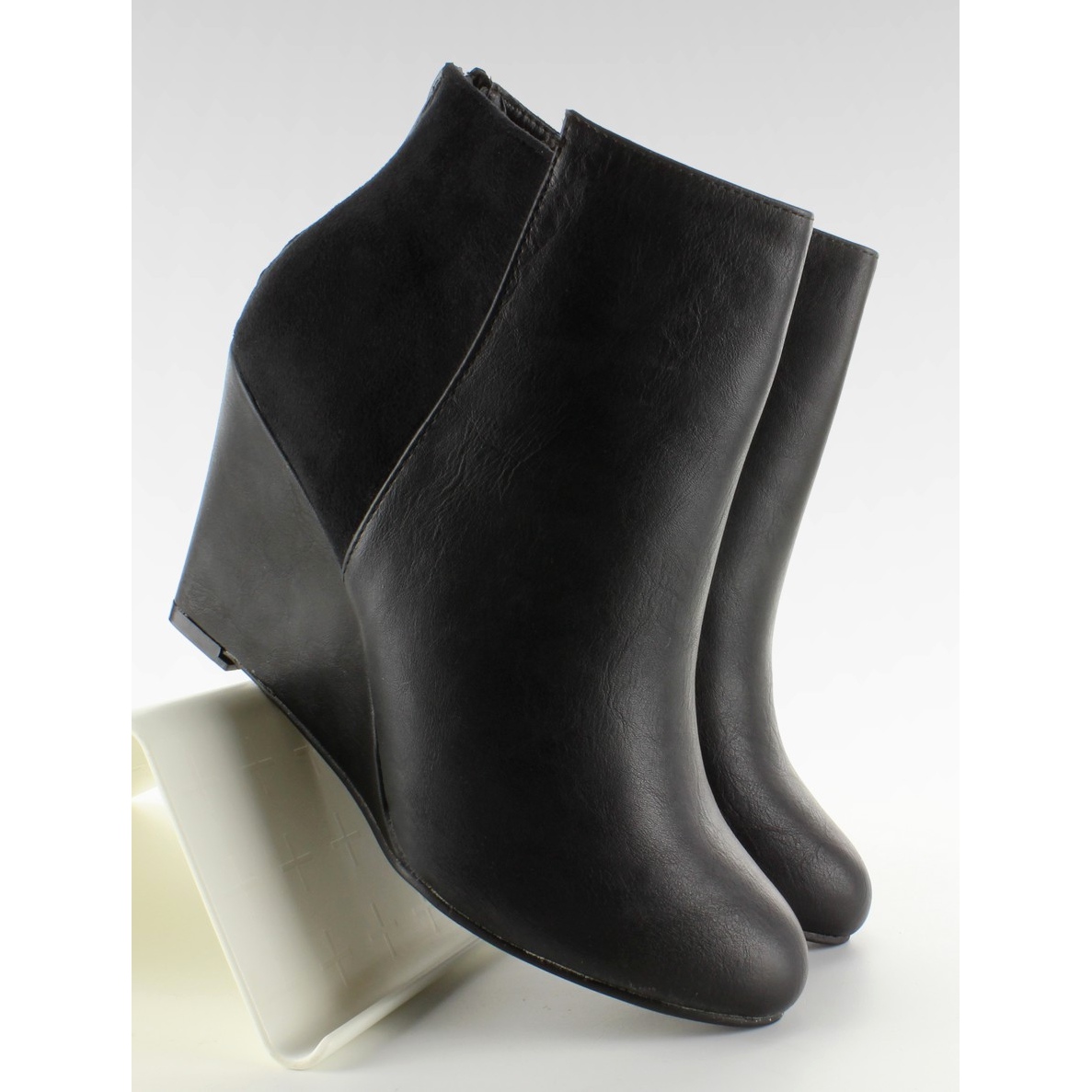 Classic, black women's ankle boots combining a soft suede effect with a smooth grain texture. Thanks to the well-shaped upper and round toe, they look elegant on the leg, and the 8.5 cm wedge ensures optical lengthening of the silhouette while maintaining stability. The zipper at the back makes it easier to put on, and the insulation makes the boots perfect for colder days.