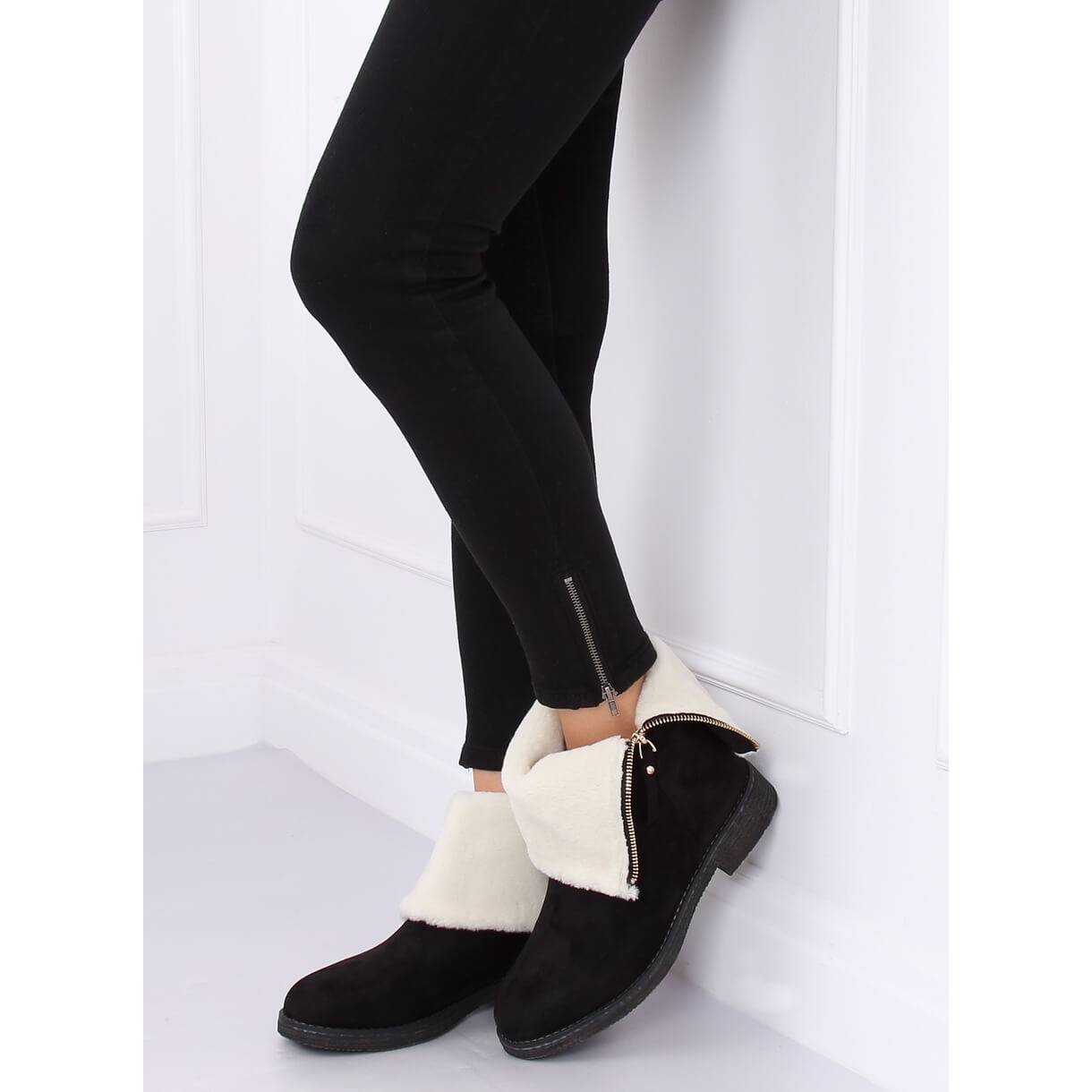 The universal 3 cm flat heel makes the boots extremely comfortable, perfect for everyday wear. You can wear them in two ways - with a straight or rolled-up upper, which gives you the opportunity to create different, fashionable styles. The practical zip fastening makes it easy to put on and take off the shoes, which every woman will certainly appreciate.