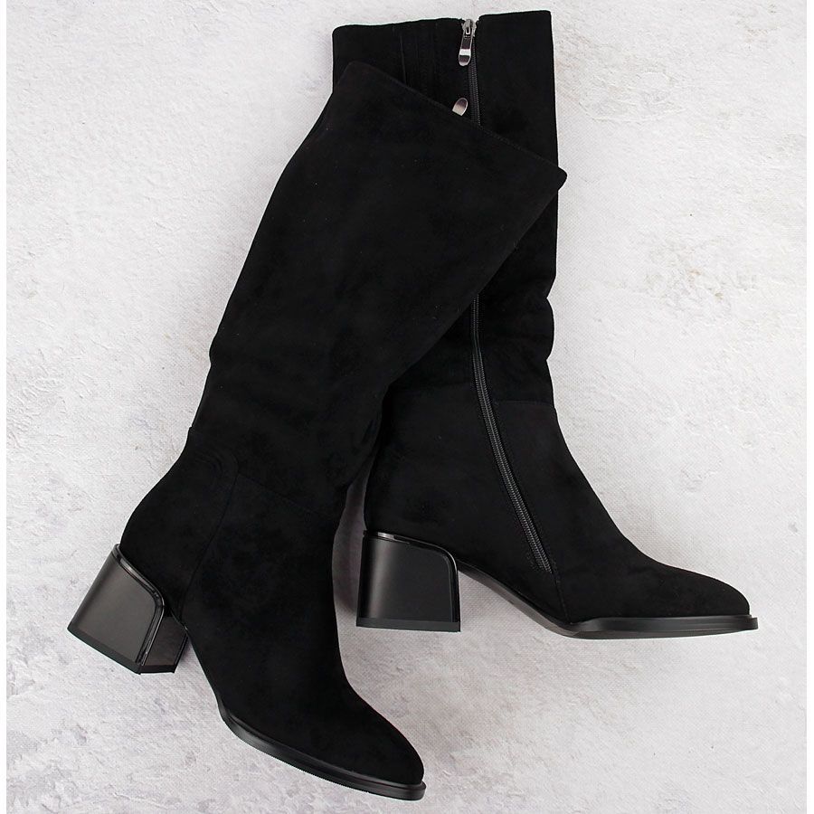 This model has a round nose and a stable block with a height of 6 cm, which increases the convenience of use, ideally suited to both everyday stylizations and elegant outputs. Boots are available in a classic black color that matches many outfits, and their universal cut makes them a great complement to every wardrobe.