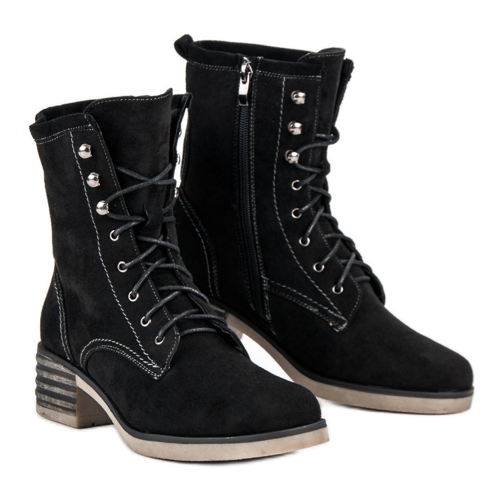These black charming work boots are perfect for a casual style, perfect for every day, and their classic look makes them suitable for many different styles. Whether you decide to wear them with jeans, a skirt or leggings, these shoes will add character to any outfit.
