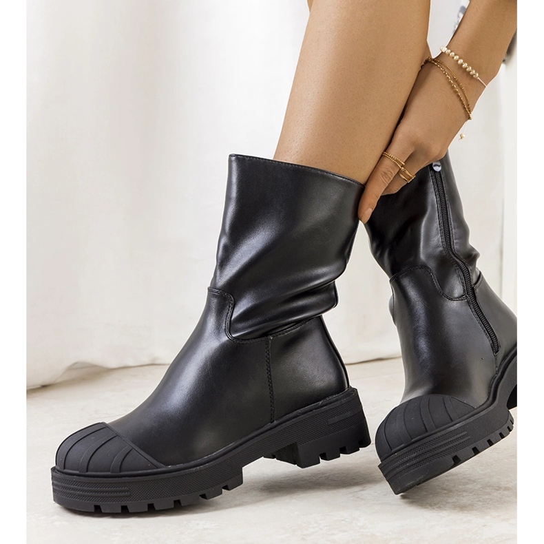 Stylish black Sville trappers are a perfect complement to autumn and winter stylizations. You will combine them with both the coat and leather jacket - they will give the look a fashionable, feisty character. The upper made of ecological leather guarantees good quality and comfort of wearing, and the rubber nose with embossing distinguishes the model from the classic styles.