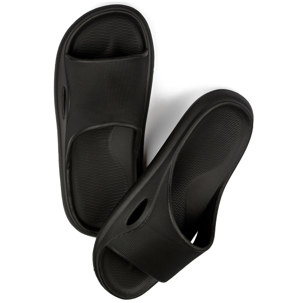 Black swimming flip flops are the perfect choice for women who value comfort and style. Made of high quality rubber, they ensure durability and ease of cleaning, which makes them great at the pool and on the beach.