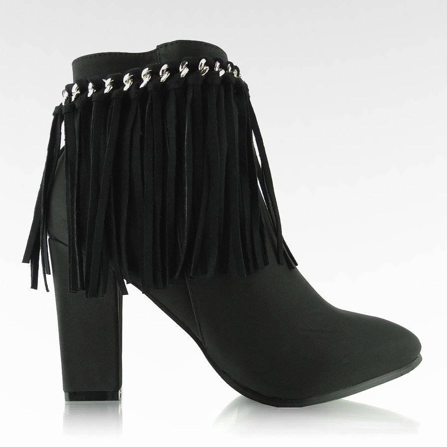 Elegant black ankle boots with fringes on a wide heel - 2-in-1 style and all-day comfort.