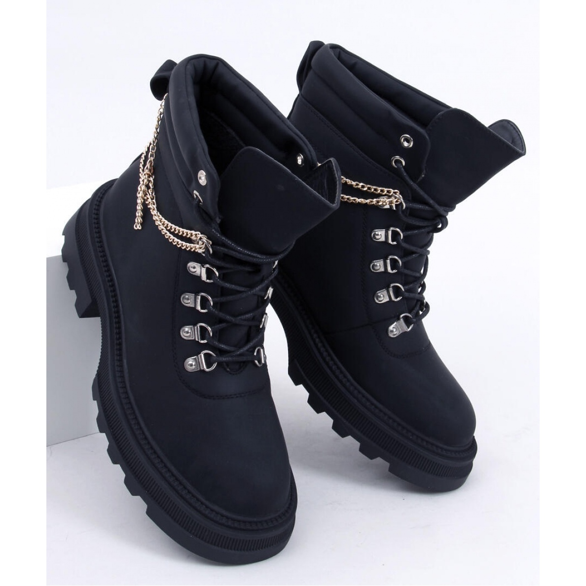 We present lace -up boots Black trappers in an elegant black color, which perfectly match fashion trends for the season. These comfortable women's shoes have been designed for people who are looking for style and comfort at the same time. Their upper is decorated with a fashionable chain, which gives them a unique character and makes them a perfect complement to any stylization.