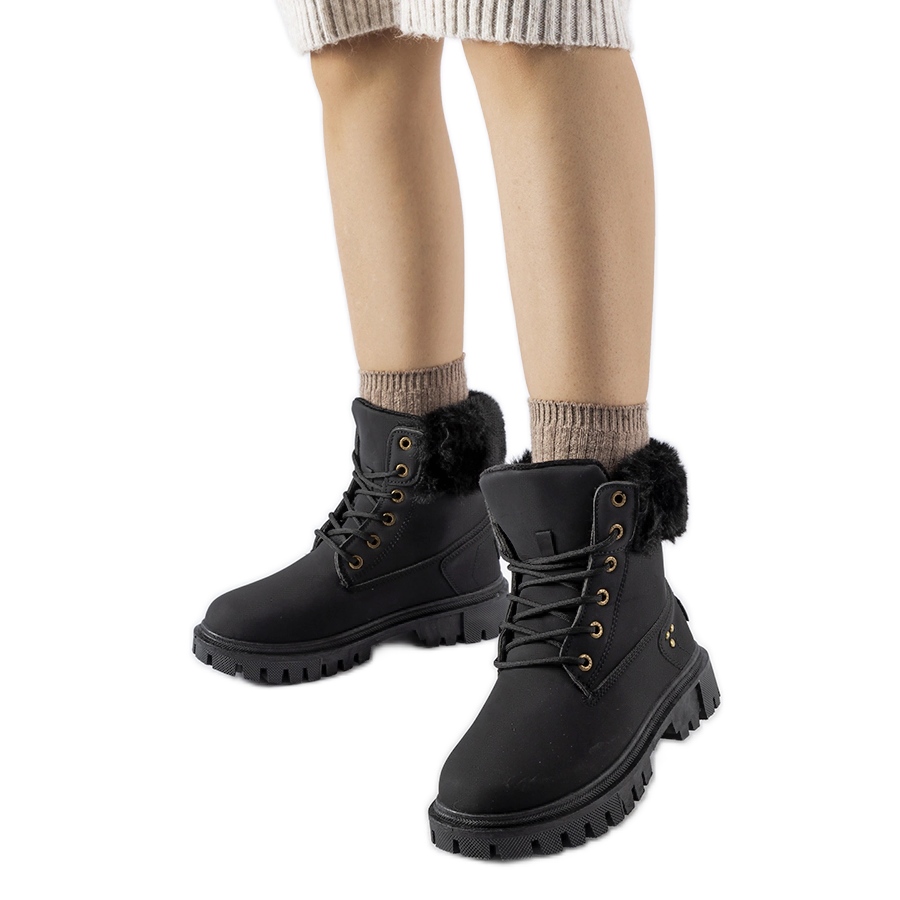 Classic and at the same time feminine: Black lace -up Albert boots combine comfort with a fashionable accent in the form of a decorative fur. A rounded nose and a flat, 4 cm heel ensure comfort of wearing, and warming makes the shoes perfect for the autumn -winter season. The height reaching the ankle (approx. 20 cm) additionally protects against cold and wind.