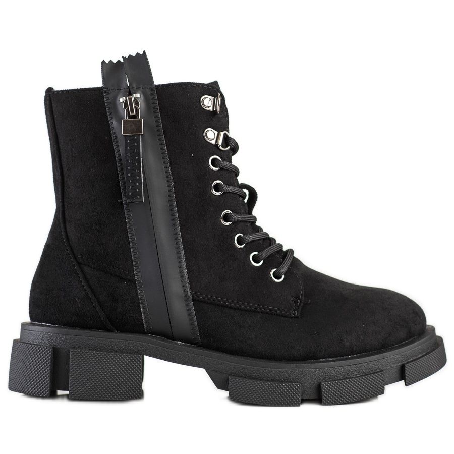 Made of high-quality imitation suede, the boots are durable and attractive. The decorative zipper adds character, making them easy to fit into the casual style of every woman. Thanks to the zipper and additional lacing, the footwear is easy to put on and fits perfectly to the foot.