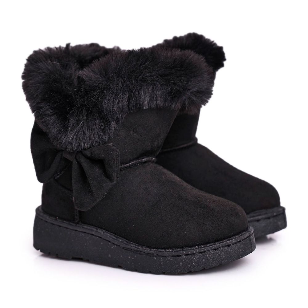 Details: FRROCK Black Vella children's snow boots with fur bow