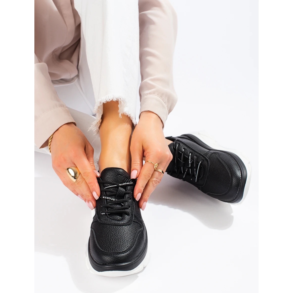 Elegant, universal Vinceza brand sneakers combining sports character with everyday comfort. Black ecological leather upper and a solid, retreaded sole give them a modern, casual look - perfect every day.