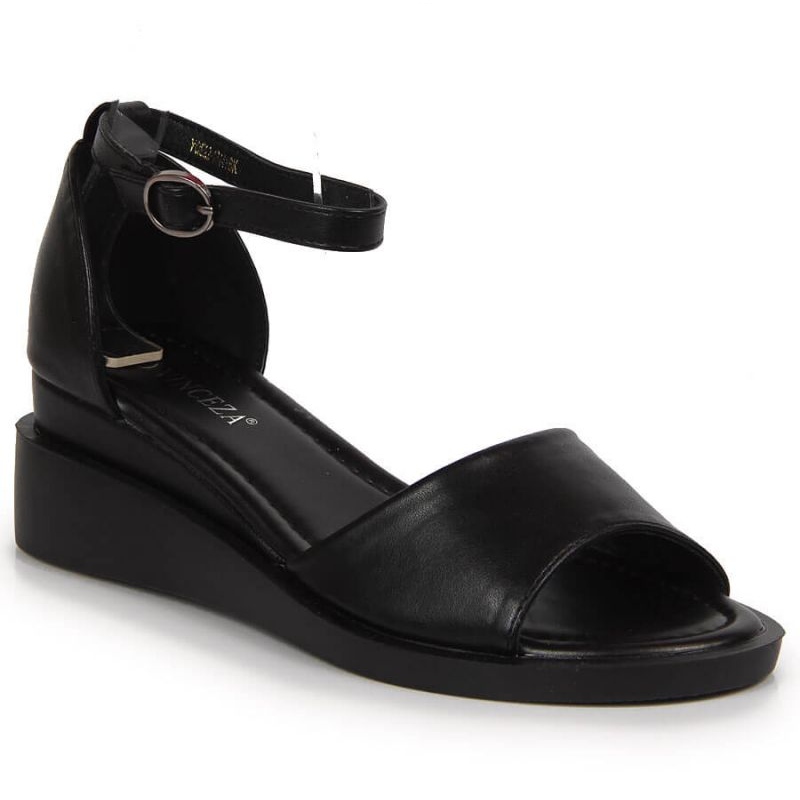 Discover the latest model of Vinceza W JAN102A wedge sandals in classic black, which will be a perfect complement to any summer styling. Made of high-quality ecological leather, these sandals combine elegance and comfort of wearing. The upper and insole are made of synthetic materials and natural leather, which ensures not only an aesthetic appearance, but also comfort even during a long day.
