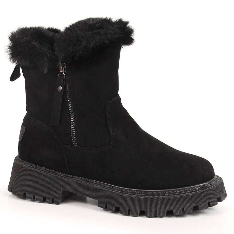 Equipped with a pleasant to the touch fur lining and insole, the boots provide effective foot insulation, making them ideal for winter walks or casual outings. The upper height of about 17 cm and a solid 3 cm platform add character to them, while ensuring comfort of wearing.