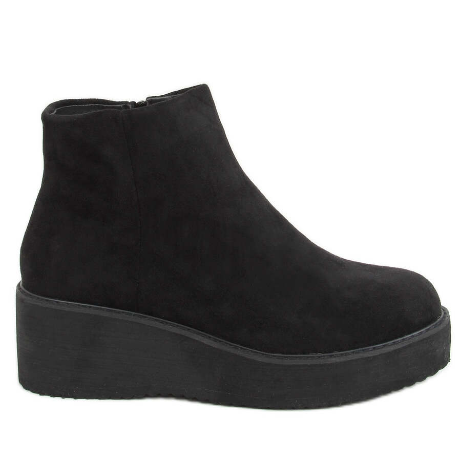 Discover the elegance and comfort of everyday styling with the E2381 Black wedge ankle boots. These suede women's ankle boots are the perfect combination of modern design and functionality. With lightweight 6 cm wedges and a 3 cm platform, they provide comfort during all-day wear.